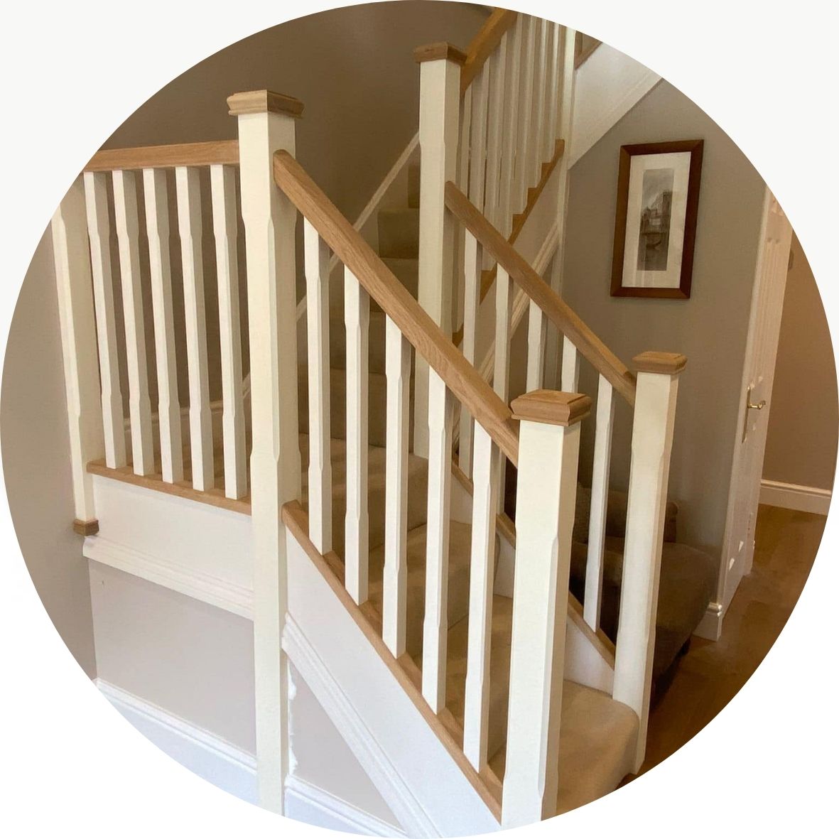 Friendly, relaxed and nothing was too much trouble. Johns skills on a particular tricky newel post has covered up an unsightly piece of wall and it looks so much better with the newel covering it. His advice on how to place a newel so the aesthetics were correct was also appreciated.